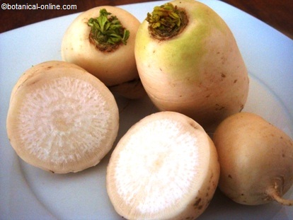 Nabos. Se muestra uno de ellos cortado por la mitad.
