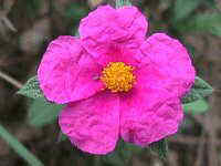 Cistus crispus L. En el Montseny només es coneix una petita localitat situada als voltants de Sant Celoni. La floració es produeix entre maig i juny. | ||